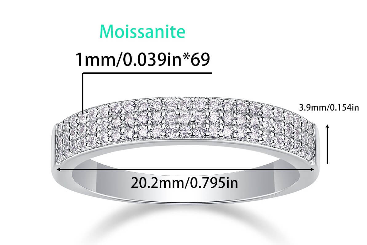 The three rows of meticulously set Moissanite stones symbolize layers of strength, resilience, and the multifaceted nature of a woman's journey. Each row represents a different aspect of life—past, present, and future—shining brightly to reflect the experiences and wisdom gained over time. The luxurious sparkle of the stones, paired with the S925 sterling silver band, creates a statement piece that is both timeless and contemporary.